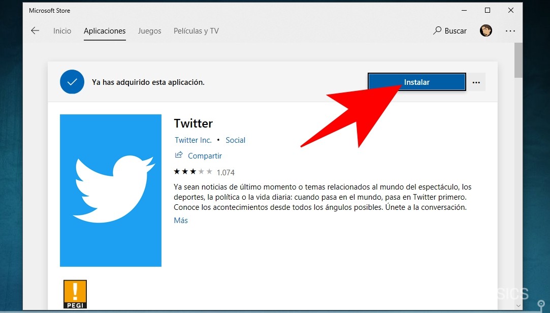 Entonces se te abrirá la Microsoft Store en el perfil de la misma aplicación. Lo que te queda hacer aquí es pulsar el botón de Instalar o Adquirir para adquirirla o descargarla como si fuera una aplicación normal y corriente.